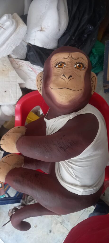 Figura animal expresiva, ternura, humor, arte y creatividad artesanal.